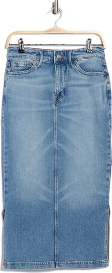 Artful whiskering and fading brings old-favorite perfection to this pencil-cut denim midi skirt designed with a slit hem to keep you moving comfortably.
