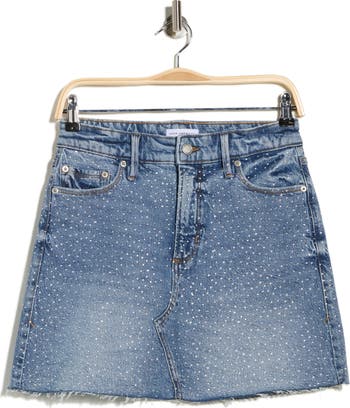 Flirty and fun, this denim miniskirt is punctuated with studs and frayed at them hem.