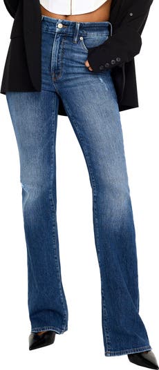 Fashioned with light stretch, these svelte jeans in a bootcut silhouette feature a versatile blue wash and a gap-proof waist.