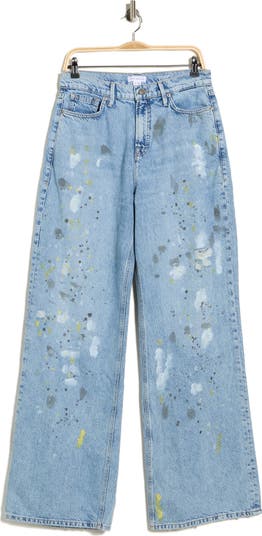 These cotton-blend paint‑splatter jeans are designed to look naturally worn in, adding laid‑back character and an artfully distressed feel to a classic denim silhouette.