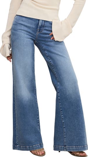 Superwide legs define perfectly faded jeans crafted with lots of comfy stretch.