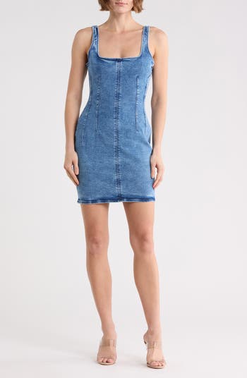 Perfect to dress up or down, this sleeveless minidress is cut from soft stretch denim in a fitted silhouette.
