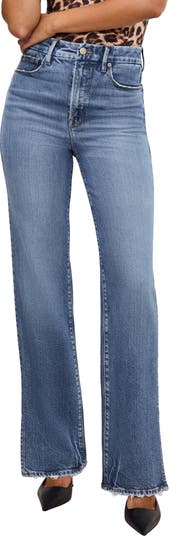 Slits at the outseams subtly flare the straight legs of superhigh-rise jeans made from innovative, lightweight SoftTech stretch denim.