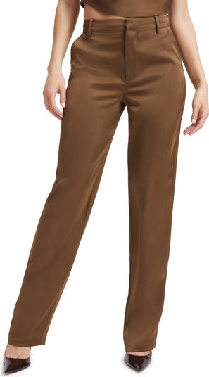 Smooth woven satin enhanced with stretch lends a lustrous finish to trousers that add a luxe touch to any ensemble.
