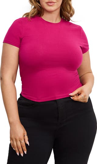 This stretch-cotton baby tee hugs every curve and brings a dose of '90s nostalgia to your look.