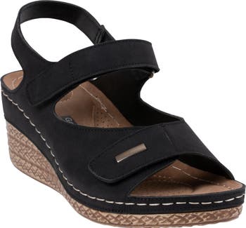 Adjustable straps offer a secure, custom fit on this chunky wedge sandal set on an extracushy footbed for daylong comfort.