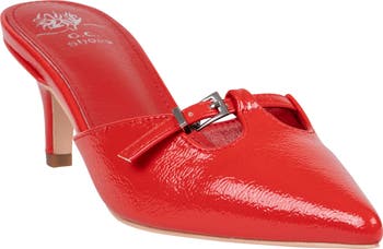 Buckled hardware adds to the sophistication of a pointy-toe mule set on a low heel that's easy to walk on from day to night.