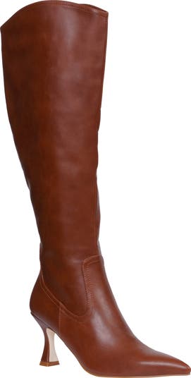 Elevate your cold-weather ensembles with this tall boot styled with a pointed toe and a flared heel.