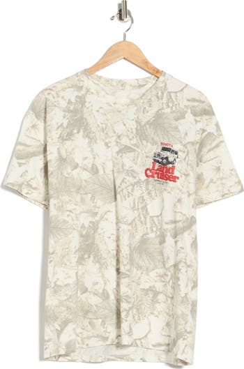 A Toyota Land Cruiser graphic and allover camo print enhance the streetwear styling of this pure-cotton T-shirt.