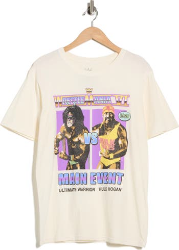 Perfect for any WrestleMania fan, this '90s-inspired cotton T-shirt showcases Ultimate Warrior vs. Hulk Hogan.