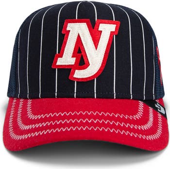Show off sporty style with this baseball-themed trucker cap featuring breathable mesh panels and a curved brim.