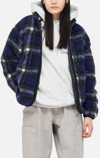 Layer on this cozy faux-shearling jacket framed by a sporty stand collar and secure zip pockets.