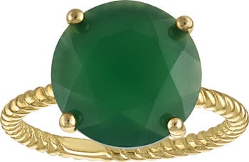A round-cut chalcedony stone brings striking green color to this rope-textured sterling silver ring plated with a warm goldtone finish.
