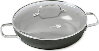 Make every day easy with the Chatham 11" everyday pan featuring a lid and helper handle. Chatham features GreenPan’s Thermolon healthy ceramic nonstick coating, which is reinforced with diamonds for incredible durability. It’s even metal utensil safe. From roasted chicken to crispy veggies, this 11" everyday pan makes any dish easy. GreenPan’s Thermolon healthy ceramic nonstick coating is free of PFAS, PFOA, lead, and cadmium, so it will never release toxic fumes, even if it’s accidentally overheated. Metal utensil safe, this collection's diamond-reinforced coating is incredibly durable. Tough hard anodized bodies are scratch-resistant and designed to stand up to daily demands. Oven and broiler safe up to 600°F. Dishwasher safe for easy cleanup. Durable glass lid for easy food monitoring, oven safe up to 425°F. Matte stainless steel handles feature a riveted, ergonomic design for a secure and comfortable grip. Suitable for all stovetops except induction. Limited lifetime warranty.