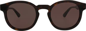 Temples branded with a gleaming logo bring signature style to sleek Italian-made sunglasses in a modified oval silhouette.