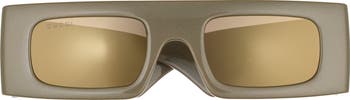 A wrap-style silhouette with a flat top enhances the futuristic appeal of these Japanese sunglasses finished with double-G accents for designer distinction.