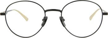 Logo-engraved arms add a classy finish to these slender wire, round optical frames fitted with prescription-ready lenses.