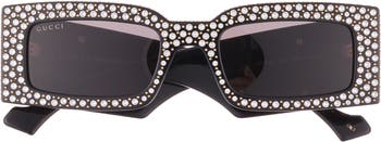 Shimmering rhinestones give a dramatic flourish to these rectangular sunglasses that are backed by full UV protection for everyday use.