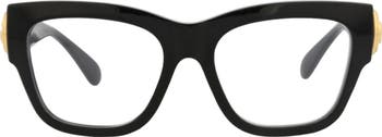 Thick frames with gleaming designer branding make these square optical glasses a standout choice for your prescription.