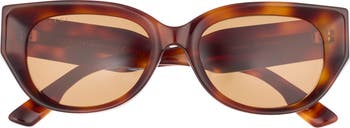 Gleaming branding and diamond-shaped studded temple accents bring designer distinction to these sleek and ever-glamorous cat-eye sunglasses.