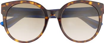 Cool and contemporary, these Havana-patterned sunglasses boast a round silhouette with arms adorned with the designer's signature logo and colors.