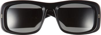 Signature logo detailing stands out at the temples of Italian-made sunglasses shaped in a classic rectangular silhouette.