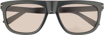 Gleaming branding along the arms adds signature designer flair to these square sunglasses fitted with tinted lenses.