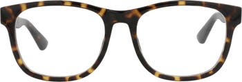 Tortoiseshell-patterned frames with gleaming designer branding make these square optical glasses a standout choice for your prescription.