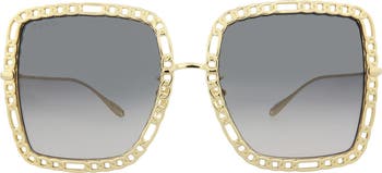 Square-framed sunnies backed with UV-protected lenses are perfect for everyday wear while the optional chain features circular ends with the brand's logo.
