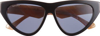 Gleaming logo accents make a statement at the temples of these Italian-made sunglasses fashioned in a cat-eye silhouette.