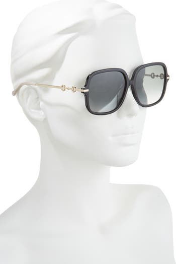 A striking logo at the temples brings signature designer flair to modern sunglasses fashioned in a square silhouette.