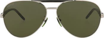 Tinted lenses bring essential shade to modern aviator sunglasses, complete with signature designer branding at the temples.