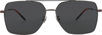 Classic aviators get a designer refresh featuring logo-etched temples and a sleek square silhouette.