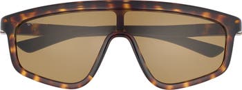 Subtle branding at the temples adds understated style to these Italian-made sunglasses fitted with shield-inspired lenses.