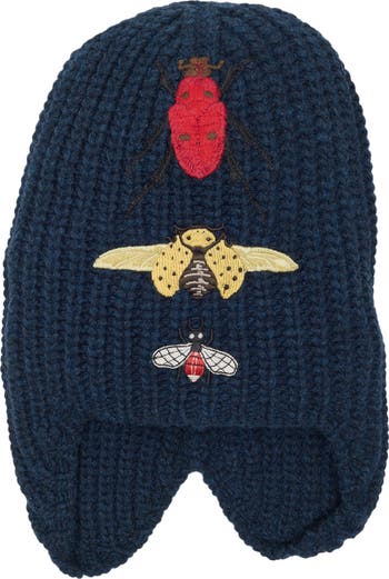 A trio of embroidered insects, including the Italian label's signature bee emblem, bring a nature-inspired touch to an elevated beanie knit from pure wool.