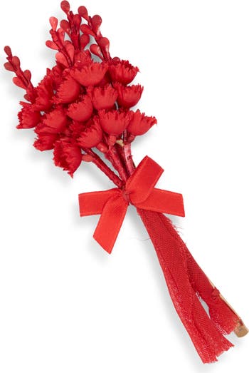 Complete any hairdo with a pop of crimson using this Italian‑crafted hair clip showcasing a bouquet of flowers.