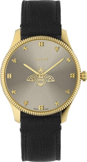 Traditional styling with the golden iconic bee logo on its dial, this watch is crafted with Swiss precision and finished with a supple leather strap.