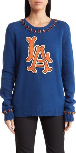 This handsome Italian-made pullover made from warm and cosy wool features a jewel-adorned crew neckline while boasting LA across the front.