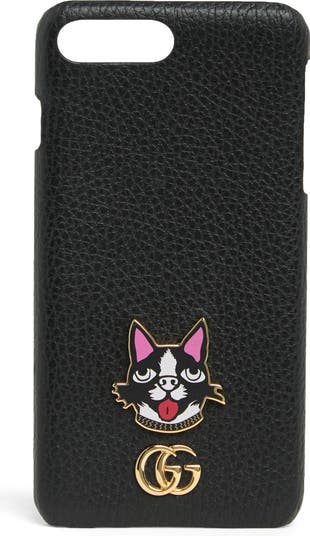 Protect your phone with this pebbled leather case featuring a metallic dog accent and gleaming logo monogram for signature style.
