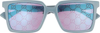 Rep the brand with these retro square sunglasses featuring logo-etched temples and latticed logo–printed lenses.