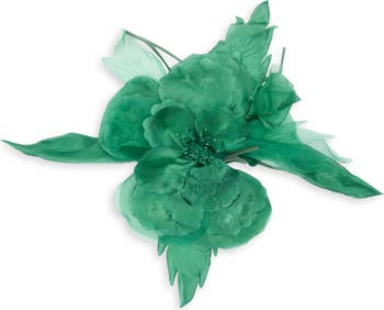 The label's signature bee emblem defines the bar-pin closure of a darling accessory crafted from frothy layers of silk and done in a sweet floral shape.