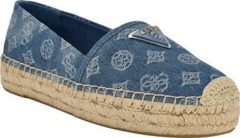 Add a breath of fresh air to your everyday style with this denim espadrille featuring an allover logo pattern.