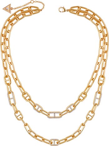 Instantly create a sophisticated layered effect with this polished double-strand necklace accented with smooth and pavé mariner links.