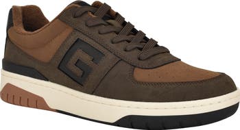 A bold blend of sporty appeal and brand charm, this faux suede sneaker is detailed with a perforated toe and textured side initials.