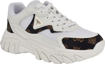 Logos keep the sporty vibes going throughout this mixed-media sneaker set on an extrachunky sole for kicked-up style.