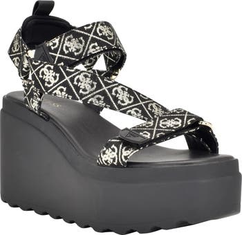 Take your off-duty looks to new heights in this sandal detailed with monogrammed logos and lofted by a towering platform heel.