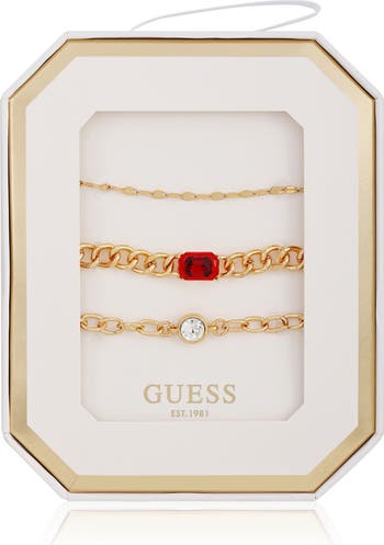 A trio of assorted chain bracelets define this set that can be stacked together or paired solo for a more minimalist look.