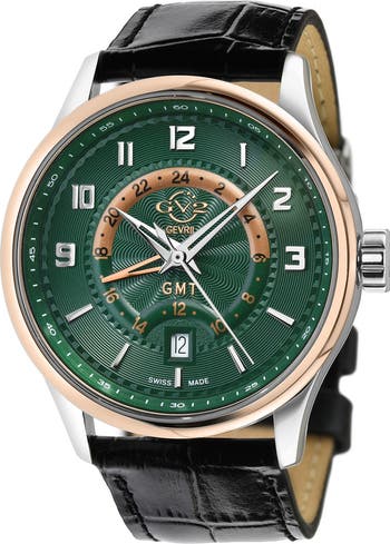 • GV2 Guggenheim Swiss Automatic Croc Embossed Leather Strap Watch, 44mm