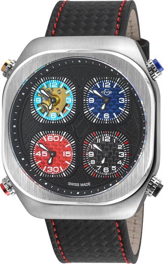 A squared, oversized case displays multiple subdials with intricate detail and multipurpose functionality, ensuring that every frame of time can be accounted for.