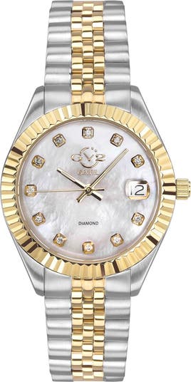 - Limited 2 year warranty - Gender: Women's - Dial Color: White MOP - Strap Material: 316L Stainless Steel - Case Material: 316L Stainless Steel - Movement: Swiss Quartz - Crystal: Anitreflective Sapphire - Closure: Deployment Buckle - Diamond Count: 11 at 0.146 ctw - Case Diameter: 34mm - Case Thickness: 10mm - Battery - Water Resistance: 5 ATM (50 Meters, 165 Feet) - Made in Switzerland